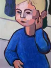 Portrait of Ben in Blue Sweater, 2025 - tempera sticks and acrylic on canvas, 16x20in