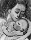 Study for Mother and Child, 2025 - pencil on paper, 10.5x14in