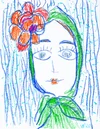 Girl in a Flower Dress, 2020 - crayon and tempera sticks on paper, 10.5x14.2in