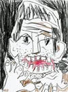 Beggar, 2020 - crayon on paper, 10.6x14in