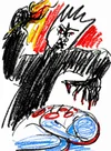 Attack of the Girl with the Tsar's Surname, 2020 - oil pastel on paper, 14x17in