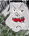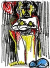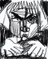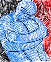 Mean Face with Large Hands, 2019 - wax pastel on paper, 14x17in