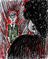Ivan the Terrible and Butcher in a Red Shirt, 2020 - oil pastel on paper, 14x17in