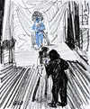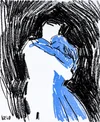 Big Lady and Boy with Pimples, 2020 - oil pastel on paper, 14x17in