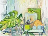 At the Pool, 2020 - oil sticks on canvas, 30x30in
