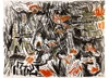 Study for "Papa, Is It Going to Be a War?", 2022 - tempera sticks and scratching on newsprint, 18x24in